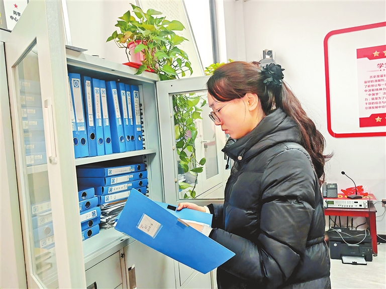 鄭州航空港區崗李鄉柴村協理員馮曉婷在整理資料。河南日報全媒體記者 郭兵 攝