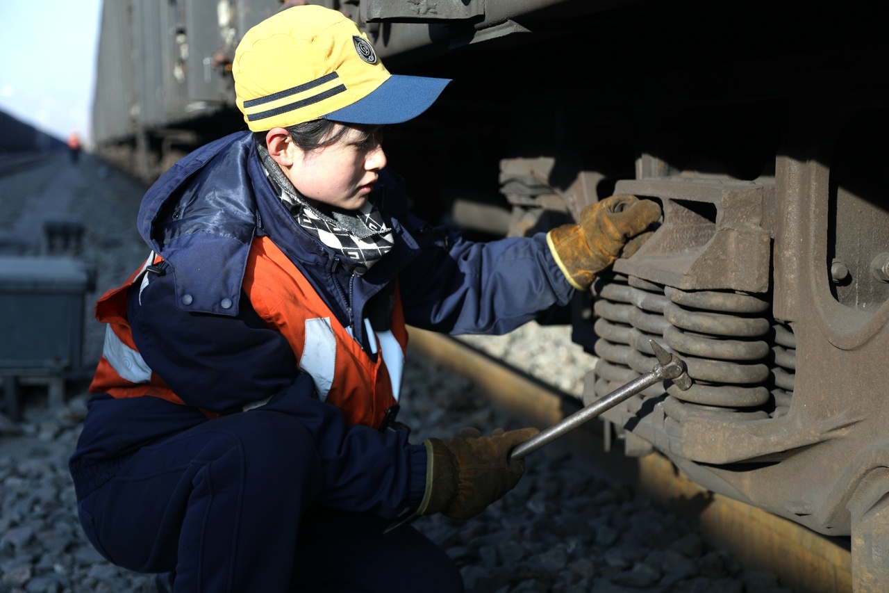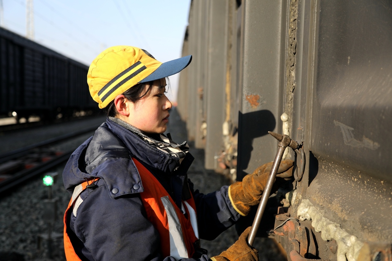 貨車檢車員是鐵路系統最艱苦的崗位之一:每班檢查200余輛車、步行近20公里、彎腰鉆車數千次,常年在戶外作業,日夜倒班,體力消耗極大。過去,這一崗位幾乎清一色由男職工承擔。初來乍到時,不少人擔心兩個小姑娘“扛不住”。但她們用行動回應質疑:“別人能干的,我們也能干好!”