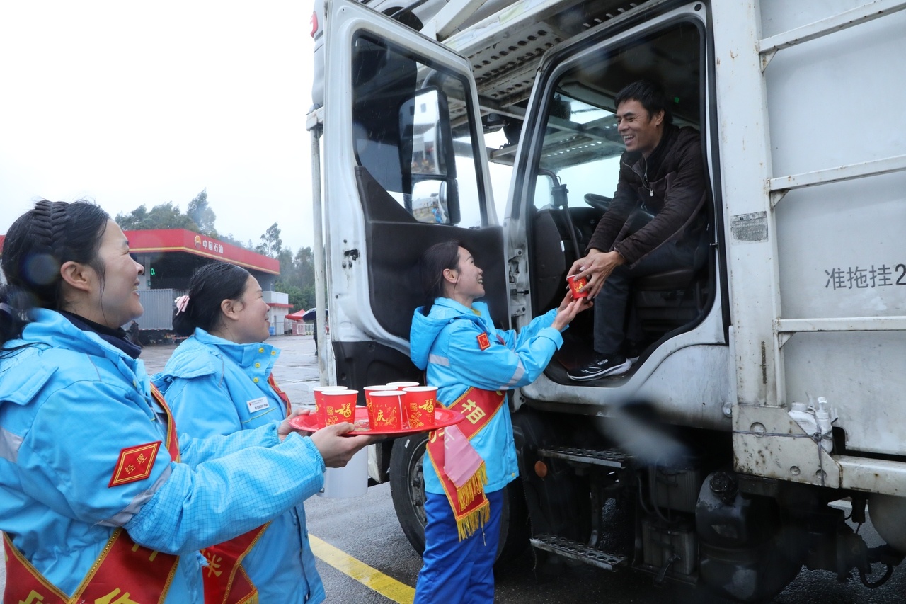 “每年春運,我們都提前一個多月開始張羅,”2月2日,位于210國道旁的中國石油河池吉祥加油站里,站經理張靈芝正帶著員工掛起紅燈籠,“你看,姜茶要提前熬,年貨要一樣樣選,員工的話術更要練得暖人心?!彼龘崞綗艋\穗子,笑著說,“忙是忙,可每當看見趕路人捧著熱茶露出笑容,疲憊了一年的眼神在我們這兒亮起來——那種踏實和暖意,就什么都值了?!?/p>