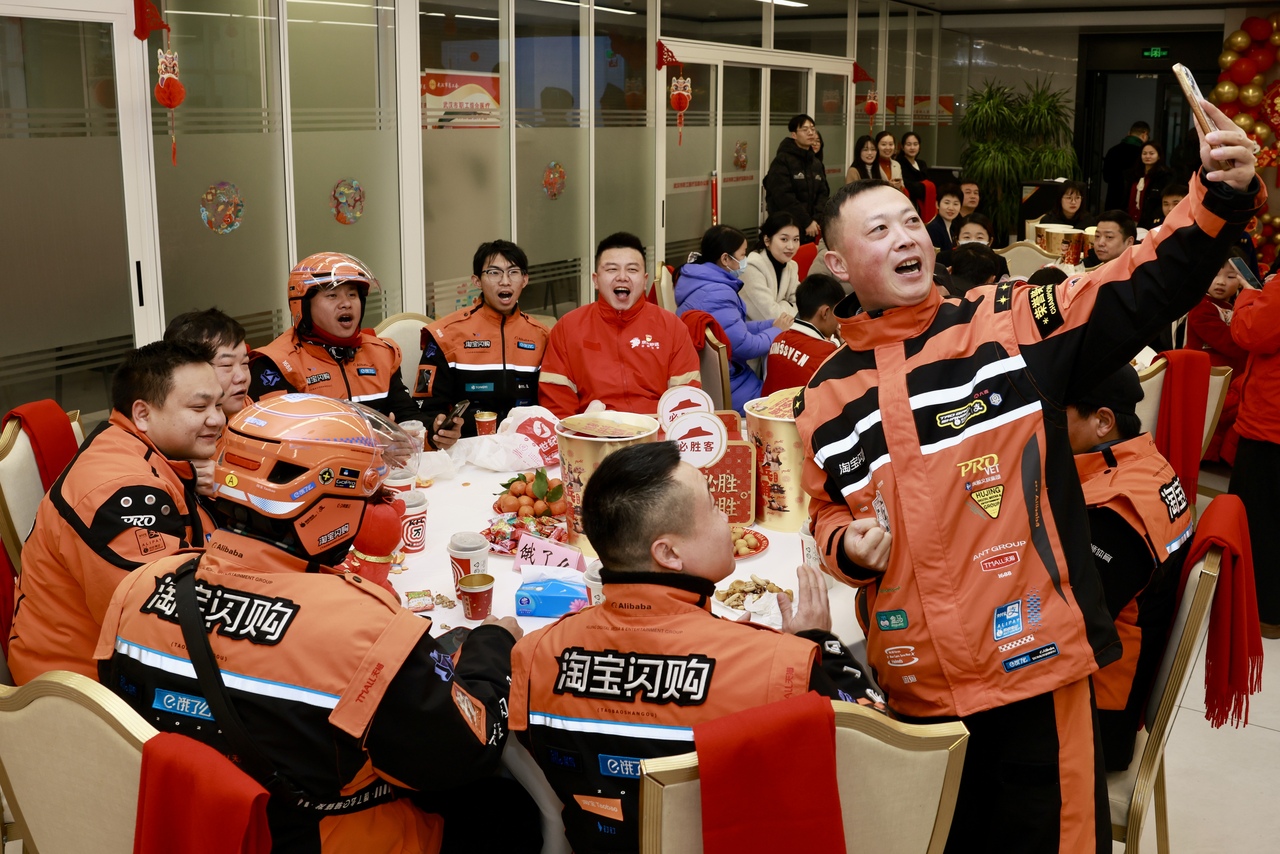 活動現場,市總工會副主席劉斌等領導為現場一線勞動者系上象征著吉祥溫暖的紅圍巾,送上了美味的年飯套餐和暖心大禮袋,禮袋內有“騎手門診”健康急救包和暖心的祝福卡。隨后,大家圍坐一堂,品嘗香噴噴的年夜飯套餐,共同觀看節目,歌舞、相聲、魔術等輪番上演,現場歡聲笑語不斷。特別設置的“驚喜屏幕”環節格外動人,職工家屬和同事們提前錄制的祝福視頻緩緩播放,熟悉的面孔、暖心的叮囑,讓現場職工紅了眼眶,也讓這份新春關懷更顯溫情。