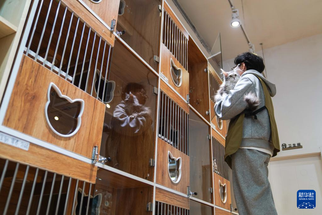 2月4日,在吉林省長春市一家寵物店內,飼養員李夢思從柜子中抱出一只將在店內寄養過春節的寵物貓。新華社記者 許暢 攝