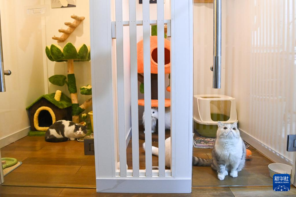 這是2月2日在廣西南寧一座寫字樓內拍攝的寵物寄養店的貓舍。新華社記者 曹祎銘 攝