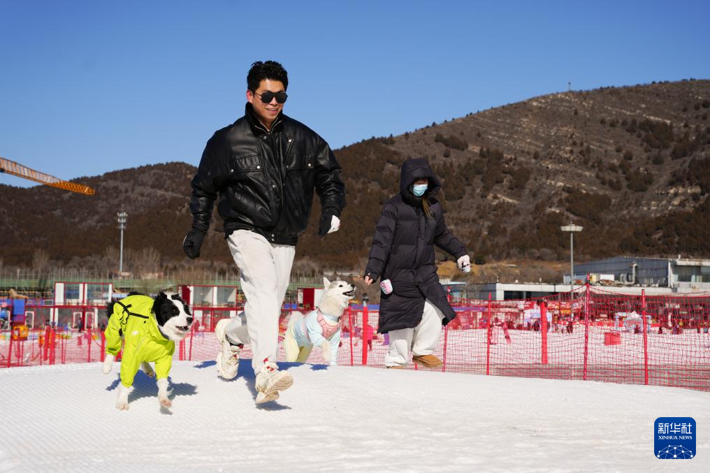 2月7日,在北京漁陽·寵趣里寵物滑雪主題樂園,主人引導寵物狗越過雪坡,體驗“雪地障礙挑戰賽”項目。據“寵趣里”樂園負責人介紹,樂園自2025年12月22日開放以來,已累計接待近千只寵物狗。新華社記者 周汀鷺 攝