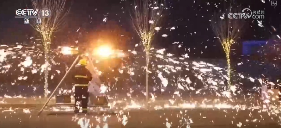 當(dāng)晚,街區(qū)內(nèi)還舉辦了“涿鹿繞花”展演。“涿鹿繞花”是河北省級(jí)非物質(zhì)文化遺產(chǎn)項(xiàng)目。現(xiàn)場(chǎng)萬(wàn)千火星如飛瀑簌簌墜落,金花漫天綻放,與古色古香的鼓樓交相輝映。此外,古裝沉浸式巡游和潮玩快閃也在這里陸續(xù)上演,讓不同年齡段的游客都能找到新春樂(lè)趣。