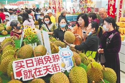 2月11日,位于龍湖海口天街的海口市旺豪日用消費品免稅店開業,市民前來選購商品。海南日報全媒體記者 王程龍 攝