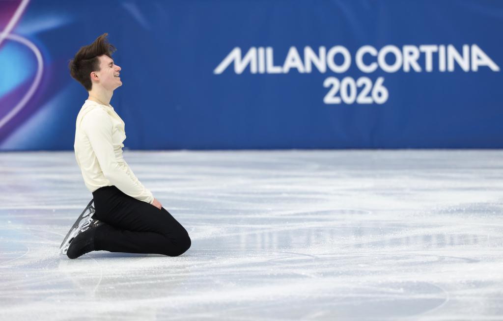 在米蘭滑冰館,瑙莫夫流暢地完成了自己的單人滑短節(jié)目。比賽結(jié)束那一刻,他仰頭看向天空,幾乎跪倒在冰面上。“我都不知道該哭、該笑,還是該怎樣。”