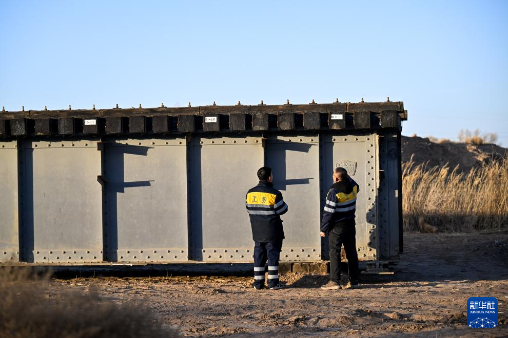 2月10日,在烏海工務段烏海路橋車間巴彥路橋工區,馬瑞祥(右)向年輕員工講解維修鋼梁橋的注意事項。馬瑞祥說,由于年輕員工對鋼梁橋認識不多,巴彥路橋工區從別處引進了一節鋼梁橋體用于業務教學,以此幫助年輕員工更好掌握鋼梁橋的技術知識。新華社記者 李志鵬 攝