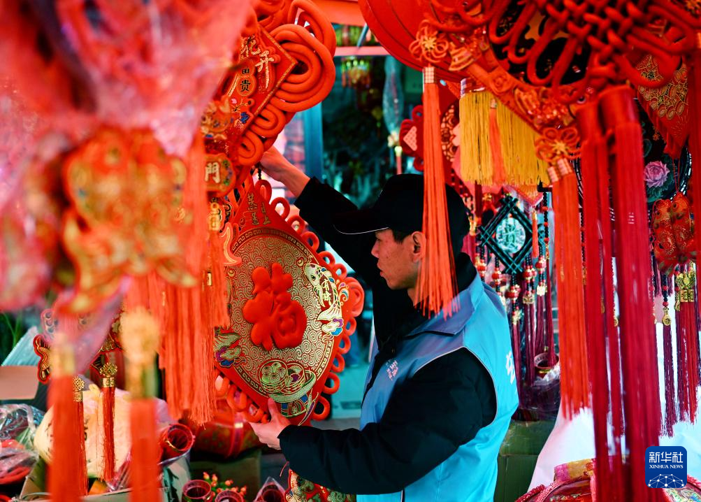 2月10日,在河南省周口市鹿邑縣玄武鎮,馬高杰在挑選掛飾。新華社記者 郝源 攝