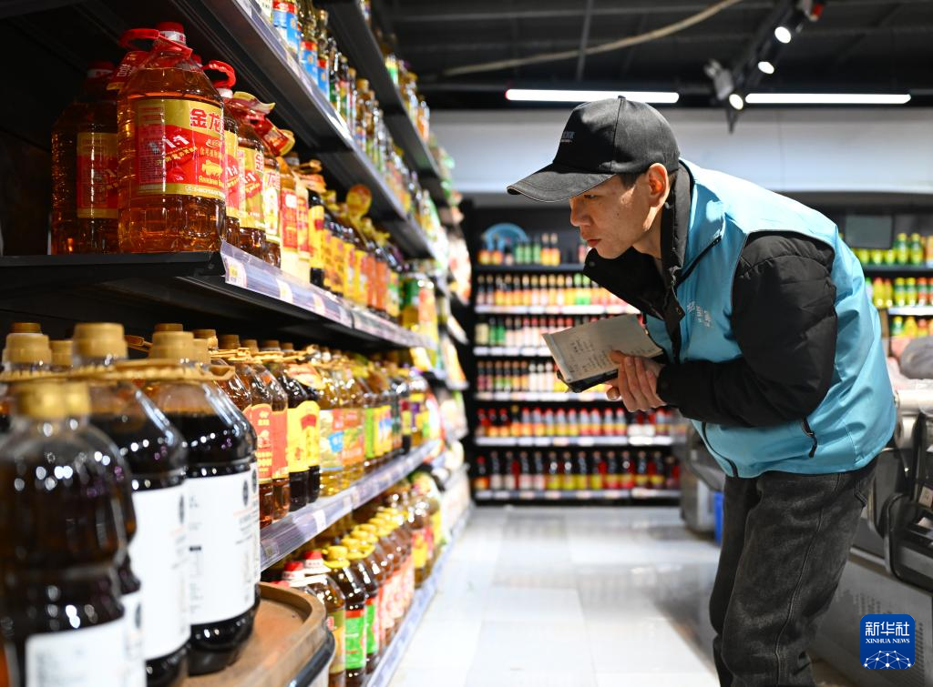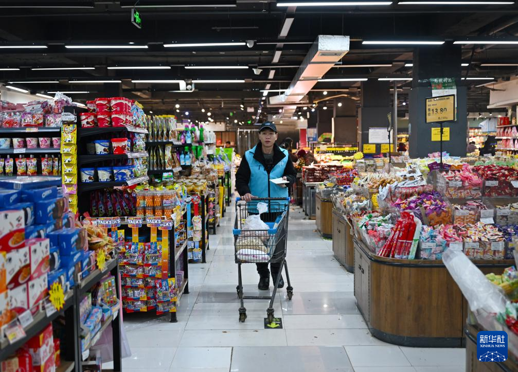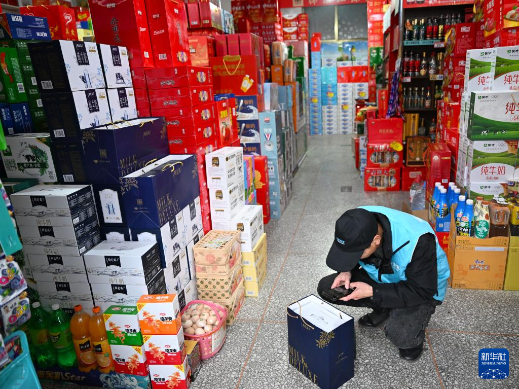 2月9日,在河南省周口市鹿邑縣玄武鎮一家超市內,馬高杰在采購商品。新華社記者 郝源 攝