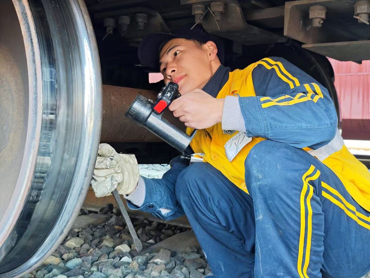 “彎腰、探身、敲擊、確認——一個車兩分鐘,一個白班一百多輛車,動作重復上千遍。”工長王應應算過一筆賬:一把檢車錘一斤多重,一個春運舉錘敲擊上萬次,相當于拎著30袋大米起落了十幾公里。這些數字堆疊出的,不只是體力,更是誤差毫厘之間的安全底線。