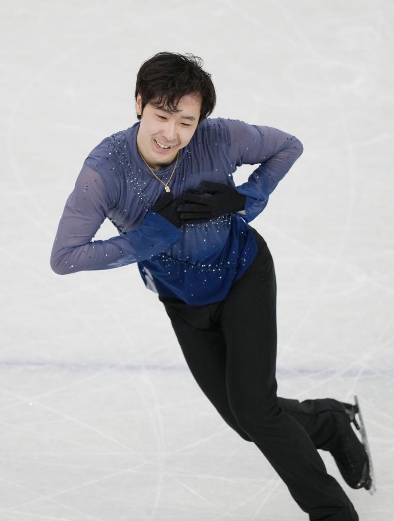 2018年2月17日,平昌冬奧會花樣滑冰男單自由滑比賽在江陵冰上運動場舉行。中國選手金博洋以297.77分的總成績獲得第四名。新華社記者 韓巖 攝