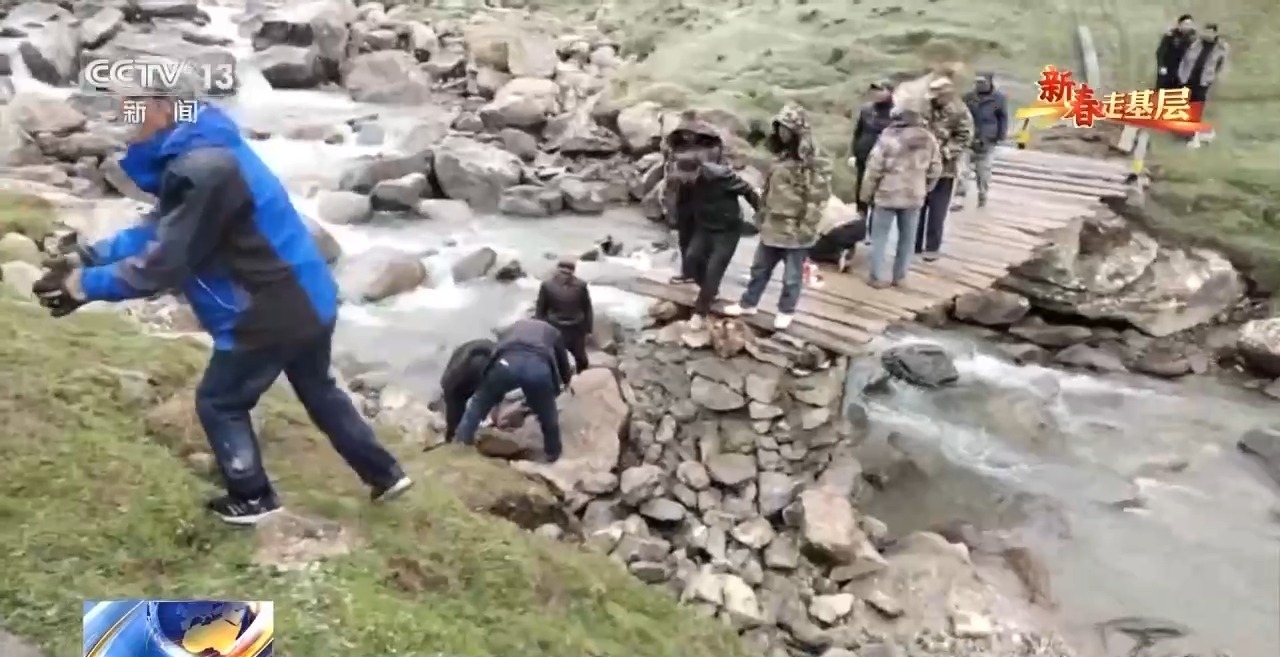 一路危機(jī)四伏,終于把三根超長(zhǎng)的木料運(yùn)進(jìn)來了,三連隊(duì)員們齊上陣,搭起了一座連心橋,牧民們拍手稱快。
