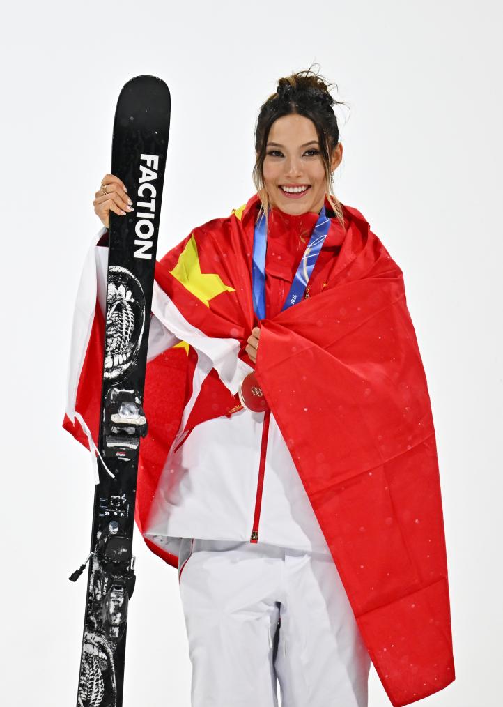 2月16日,中國選手谷愛凌在頒獎(jiǎng)儀式后。新華社記者 張宏祥 攝