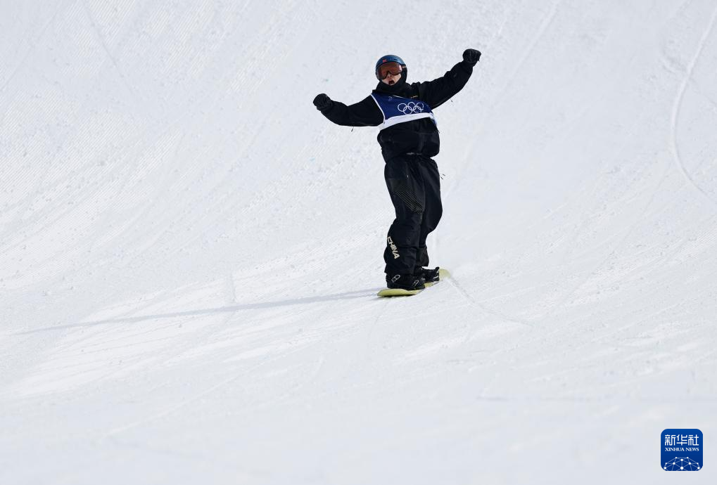 2月18日,中國選手蘇翊鳴在比賽中慶祝。新華社記者 王鵬 攝