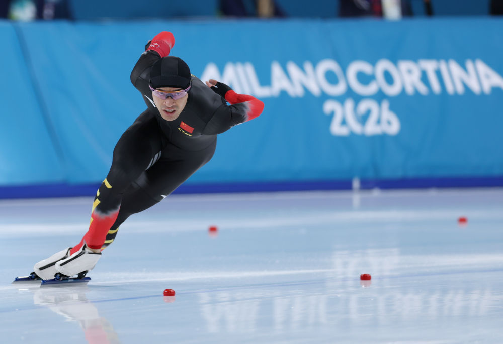 2月11日,寧忠?guī)r在速度滑冰男子1000米決賽比賽中。新華社記者 杜瀟逸 攝