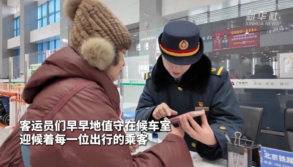 清晨,天色漸亮。在河北省承德南站,已有不少旅客陸續(xù)進出車站,客運員們早早地值守在候車室,迎候著每一位出行的乘客。邢麗偉,是中國鐵路北京局集團有限公司承德車務段承德南站的一名客運值班員。自2013年參加工作以來,今年已經(jīng)是她經(jīng)歷的第13個春運了。