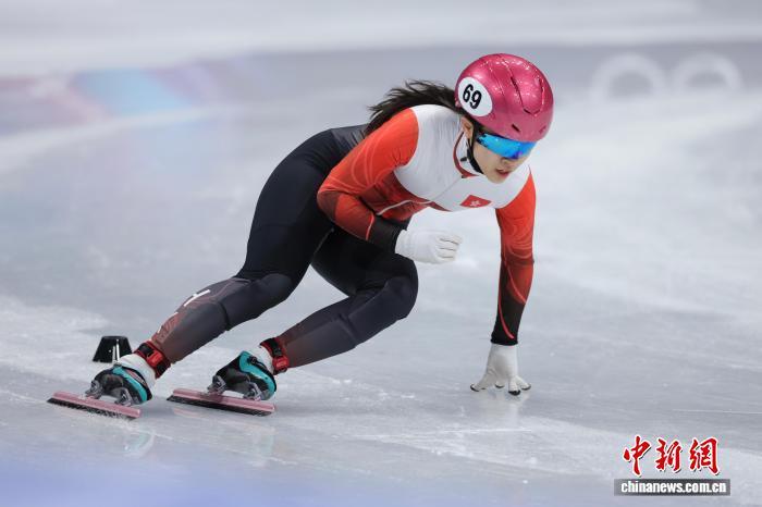 當地時間2月20日,在意大利舉行的米蘭冬奧會短道速滑女子1500米半決賽中,中國香港選手林靜欣晉級A組決賽。中新社記者 蔣啟明 攝