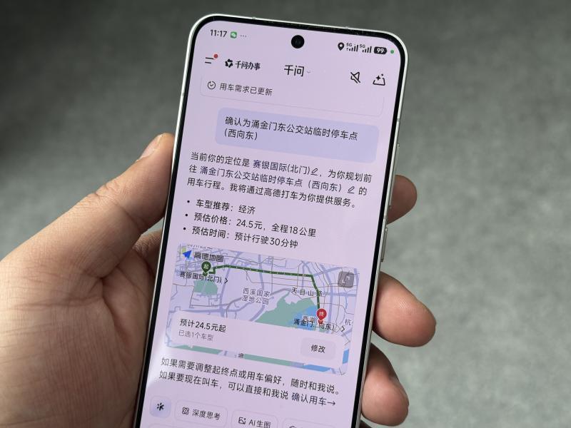 3月23日,阿里千問正式上線AI打車功能,用戶可一句話完成選車型、添加途經點、預約時間等操作,還支持“要空氣清新的車,價格不超過30元”“駕駛平穩”“服務態度好”等個性化需求。