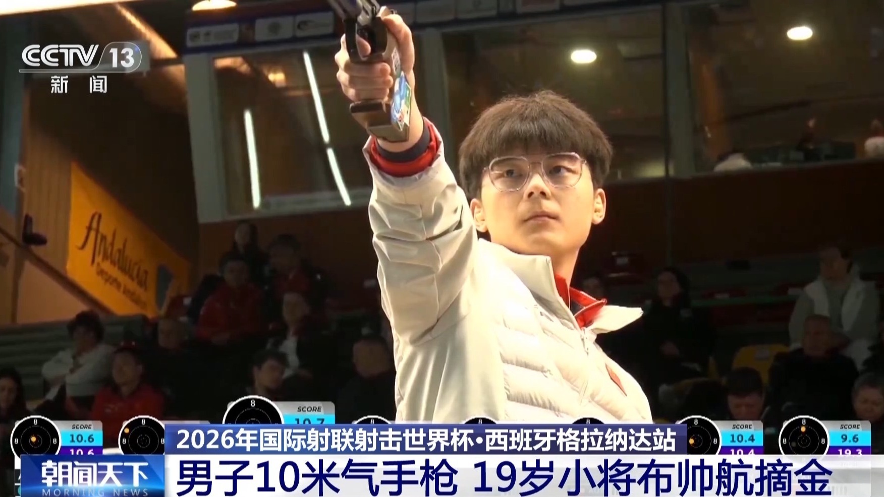 昨晚,2026年國際射聯射擊世界杯西班牙格拉納達站中,中國19歲小將布帥航以244.5環奪得男子10米氣手槍金牌。