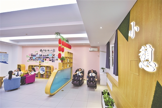 2023年,讓中鐵太原局集團公司太原車輛段動車組運用所“TEDS”檢測班組職工最受歡迎的打卡地就是隔壁的“間休室”。該段在緊鄰工作間的地方修建了一個面積約有120平方米的“間休室”,備有咖啡機、按摩椅、圖書等,讓職工在緊張工作之余放松心情,增強幸福感。圖為職工在間休室里小憩。張晉彤 攝