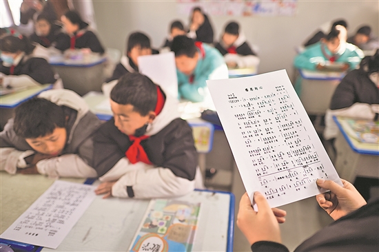 1月2日,青海省海東市民和回族土族自治縣官亭鎮(zhèn)中心學(xué)校的學(xué)生在上音樂課。當(dāng)日,受積石山6.2級地震影響停課的青海震區(qū)所有中小學(xué)校全面實現(xiàn)線下教學(xué)。新華社記者 張龍 攝