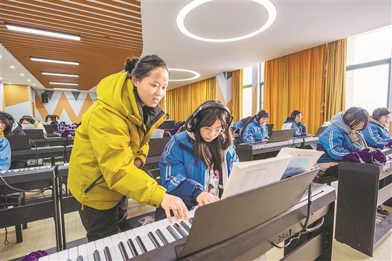 1月3日,安徽省蕪湖市繁昌區蕪湖機械工程學校的實訓基地,學生在進行鋼琴樂理知識訓練。近年來,繁昌區大力發展現代職業教育,強化辦學特色,推進產教融合、校企合作,著力提升職教學生的就業水平和適崗能力。本報通訊員 肖本祥 攝