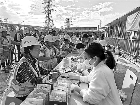 近日,在中鐵二局深圳公司廣州南沙片區在建項目工人生活區,300余名工人現場進行了免費體檢和義診。醫護人員為工人測量血糖、血壓,并提供專業的診斷和治療建議。此外,現場還安排了急救知識及AED使用培訓等環節。據悉,此次“義診服務進工地,情暖工友護健康”活動由該公司工會聯合醫院共同舉辦,后續將強化與醫院在體檢、醫療救治等方面的合作。本報記者 劉友婷 本報通訊員 吳坤和 攝