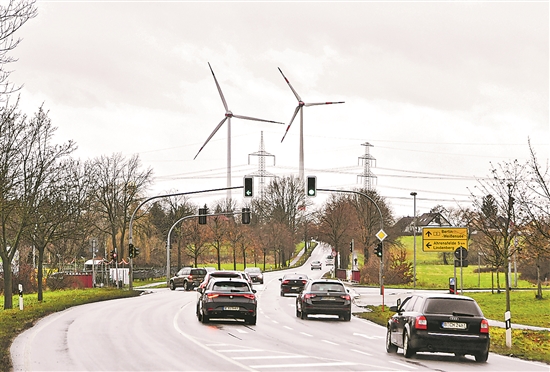 德國能源監管機構聯邦網絡管理局日前表示,2023年該國風能、水能、太陽能、生物質能等可再生能源的發電占比超過一半。圖為近日在德國柏林和勃蘭登堡州交界處拍攝的風電設施。新華社記者 任鵬飛 攝