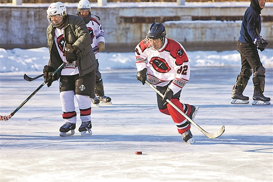 寒冬時節(jié),眾多冰球愛好者來到沈陽勞動公園冰場享受冬日運動的快樂。圖為近日冰球愛好者在沈陽市勞動公園人工湖上打冰球。