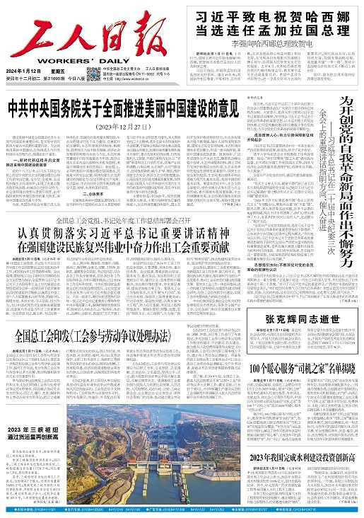 工人日報 2024年01月12日 星期一