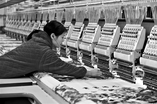 近年來,河南省汝州市加大招商引資和創業扶持力度,規劃建設集農民工返鄉創業、新興產業培育、轉移就業等多種功能于一體的汝繡產業園區,目前已入駐機繡企業100余家,安排就業6000余人。新華社記者 魯鵬 攝