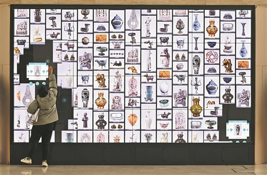1月12日,游客在位于石家莊市的河北博物院參與互動游戲。