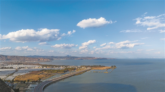 1月15日拍攝的滇池景色。