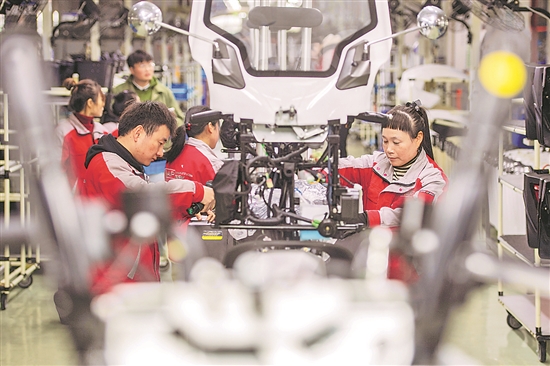 1月19日,位于浙江省湖州市長(zhǎng)興經(jīng)濟(jì)技術(shù)開(kāi)發(fā)區(qū)的浙江睿璞智能汽車(chē)股份有限公司數(shù)字化車(chē)間,工人在生產(chǎn)線上忙碌作業(yè),趕制來(lái)自巴西、意大利、西班牙等境外客戶(hù)的新能源微型物流車(chē)訂單。