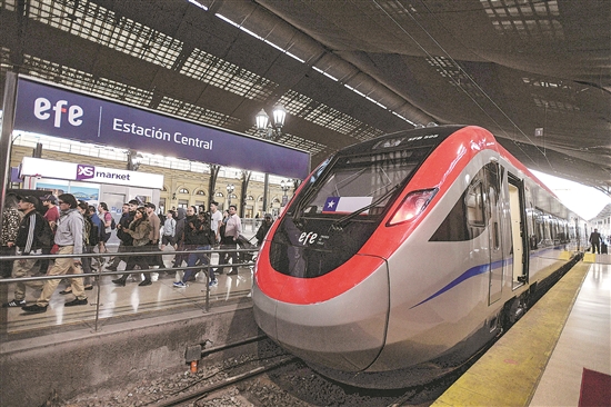 中國企業中車四方股份公司為智利研制的電力內燃雙動力動車組日前在智利投入載客運營,服務智利國家鐵路阿拉梅達至庫里科區間。該動車組最高運行時速160公里,是當前南美洲最快的軌道列車。