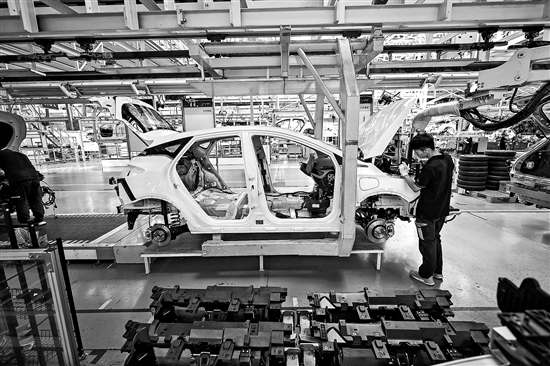 1月19日,中國工信部副部長辛國斌在國新辦新聞發布會上表示,2023年中國汽車整車出口491萬輛,同比增長57.9%,有望首次躍居全球第一。圖為山西晉中,工人在生產汽車。