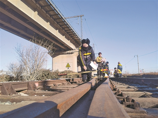 春運臨近,淄博線路車間組織職工學(xué)技練功,進一步提升業(yè)務(wù)水平。道岔檢查是實作考試最具挑戰(zhàn)性的環(huán)節(jié)之一,最終張鶴提前3分鐘完成道岔檢查作業(yè)。像張鶴這樣的青工一次次的俯身檢查和精整細修,只為給鋼軌體檢把脈,讓旅客平穩(wěn)舒適回家。孟陽 攝