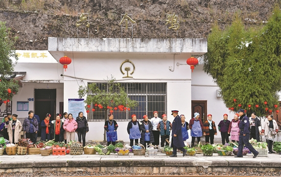 1月26日,在滬昆鐵路六個雞火車站,村民在等候5640次列車進站,準備將蔬菜和年貨上車售賣。