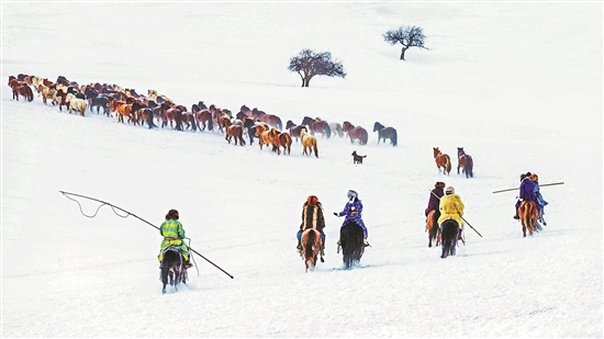 近日,內(nèi)蒙古自治區(qū)赤峰市克什克騰旗烏蘭布統(tǒng)蘇木小紅山子嘎查舉行“冬季冰雪攝影節(jié)”,吸引了大批游客和攝影愛好者。表演結(jié)束,人們走上回家的路。