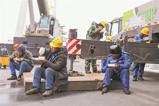 春節前,《工人日報》記者前往常泰長江大橋,蹲點采訪一周,記錄下工人們在寒冬里熱火朝天的施工場景。