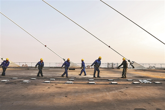 “建好一座橋 造福一方百姓”,這是掛在常泰長江大橋下層鋼梁面工地上的一句標語。當我們享受著橋梁帶來的便利時,這些橋梁人可能早已收起行囊奔赴下一個建設現場。而這句話也是橋梁人無論走到哪兒都要肩負的責任,也是他們不變的承諾。