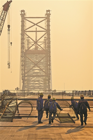 2月1日,農歷臘月二十二。當忙碌了一年的人們乘坐各種交通工具駛向家的方向時,常泰長江大橋的工地上卻是機器轟鳴。