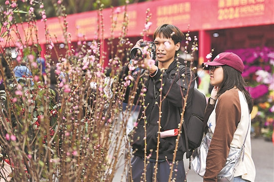 2月3日,市民在2024深圳迎春花市上拍攝鮮花。