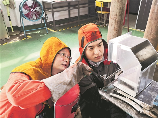 丁澄洋接過父親手中的焊槍,在弧光中感受“學技術大有可為”——