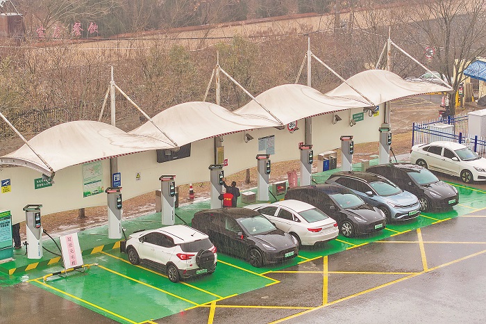 圖為江蘇省滬蓉高速黃栗墅高速服務區充電站。預計春節期間,江蘇省高速公路服務區充電量將達到400萬千瓦時,同比增長150%。本報記者 劉金夢 攝