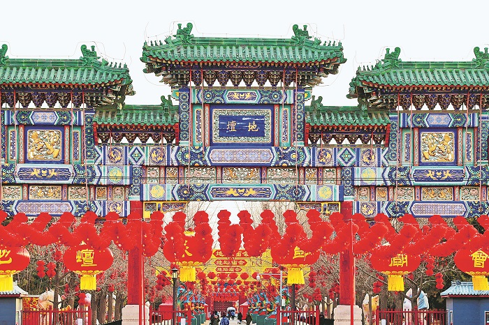 2月2日,北京地壇公園,地壇廟會(huì)景觀布置基本完成,春節(jié)喜慶氛圍濃郁。方澤壇北側(cè)以“春”字與象征吉祥如意的中國(guó)結(jié)、紅燈籠相搭配,烘托節(jié)日喜慶氛圍。據(jù)了解,今年春節(jié),地壇、龍?zhí)丁S(chǎng)甸、大觀園、石景山游樂(lè)園、八大處等傳統(tǒng)廟會(huì)全面恢復(fù)。