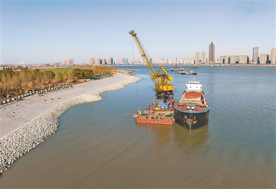 圖為在安徽省蕪湖市鳩江區拍攝的長江蕪湖河段整治工程建設工地現場。