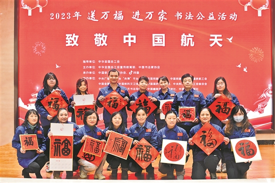 2023年1月15日,由全國總工會指導,全國總工會宣傳教育部、中國書法家協會主辦的2023年“送萬福、進萬家”書法公益活動走進中國航天,為廣大航天人送上新年祝福。