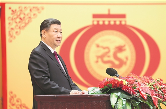 2月8日,中共中央、國務院在北京人民大會堂舉行2024年春節團拜會。中共中央總書記、國家主席、中央軍委主席習近平發表講話。