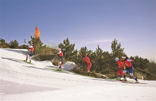 題圖:2月19日,參賽選手在越野滑雪公開組女子團體短距離(自由技術)決賽中。 新華社記者 黃博涵 攝